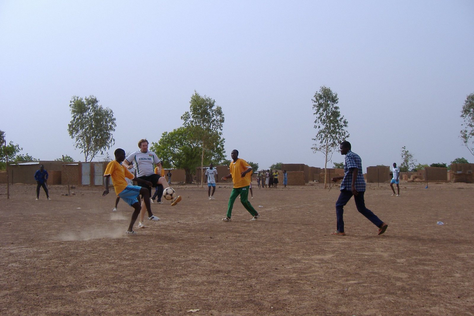 a soccer match. Tim participated in the match. He didn't do half bad either. He was instructed to attack the ball and not the person. Tim just apologized and said that he was used to American football not European football. The game ended with Tim's team wining. He was pretty stoked about wining his first soccer game in Africa.